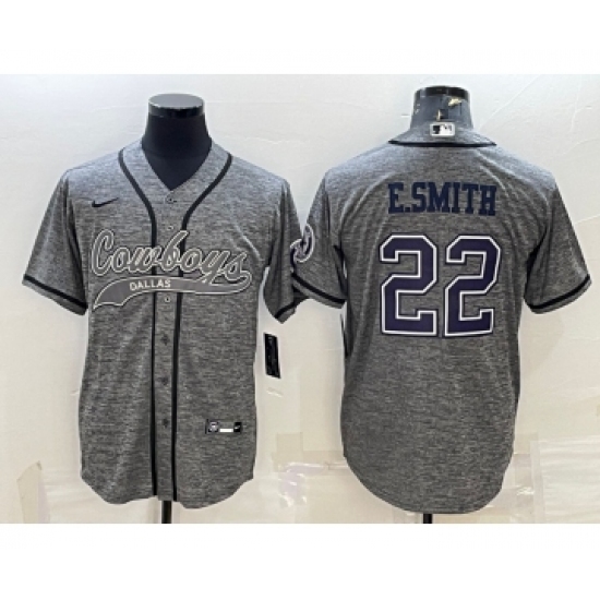 Men's Dallas Cowboys #22 Emmitt Smith Grey Gridiron With Patch Cool Base Stitched Baseball Jersey