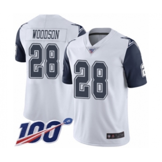 >Men's Dallas Cowboys #28 Darren Woodson Limited White Rush Vapor Untouchable 100th Season Football Jersey