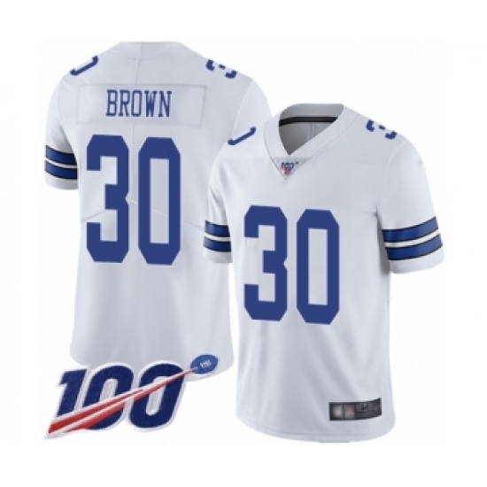 >Men's Dallas Cowboys #30 Anthony Brown White Vapor Untouchable Limited Player 100th Season Football Jersey