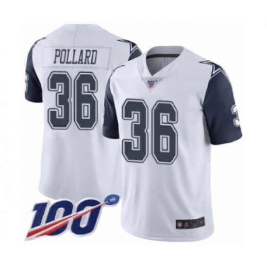 >Men's Dallas Cowboys #36 Tony Pollard Limited White Rush Vapor Untouchable 100th Season Football Jersey