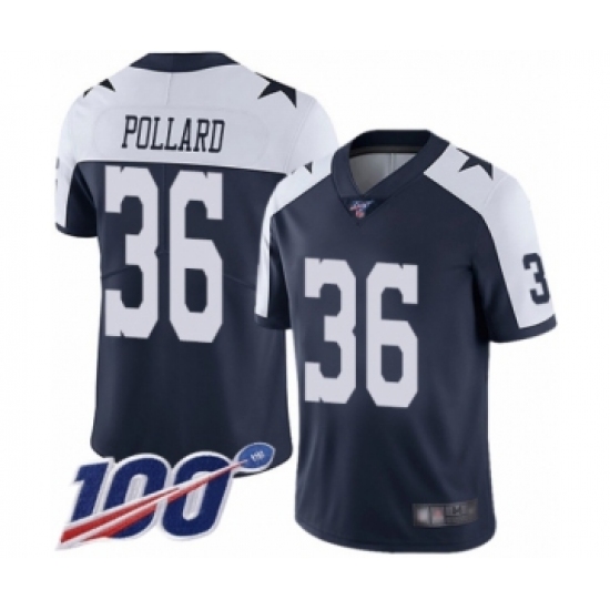 >Men's Dallas Cowboys #36 Tony Pollard Navy Blue Throwback Alternate Vapor Untouchable Limited Player 100th Season Football Jersey