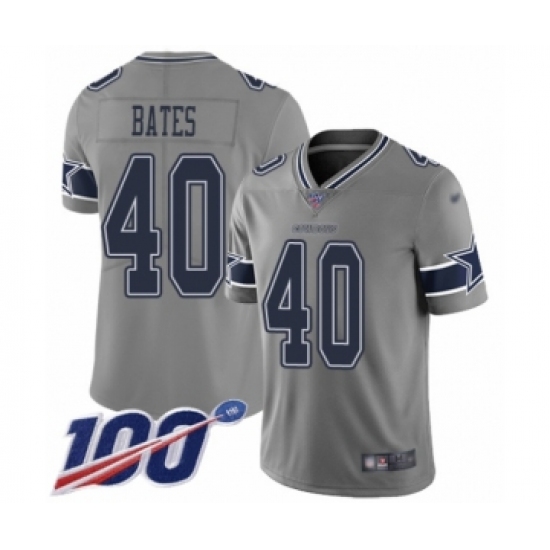 >Men's Dallas Cowboys #40 Bill Bates Limited Gray Inverted Legend 100th Season Football Jersey