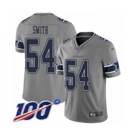 >Men's Dallas Cowboys #54 Jaylon Smith Limited Gray Inverted Legend 100th Season Football Jersey