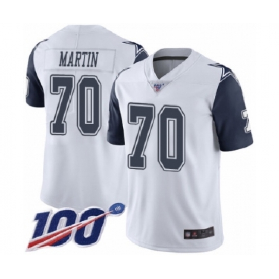 >Men's Dallas Cowboys #70 Zack Martin Limited White Rush Vapor Untouchable 100th Season Football Jersey