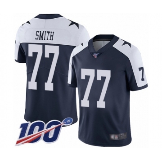 Men's Dallas Cowboys #77 Tyron Smith Navy Blue Throwback Alternate Vapor Untouchable Limited Player 100th Season Football Jersey