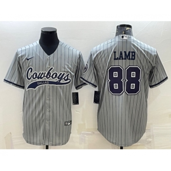 Men's Dallas Cowboys #88 CeeDee Lamb Grey With Patch Cool Base Stitched Baseball Jersey