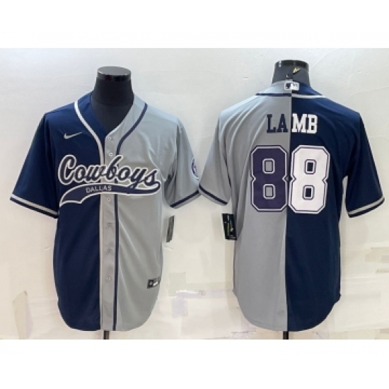 >Men's Dallas Cowboys #88 CeeDee Lamb Navy Blue Grey Two Tone With Patch Cool Base Stitched Baseball Jersey