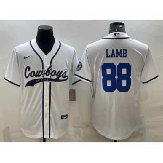 Men's Dallas Cowboys #88 CeeDee Lamb White With Patch Cool Base Stitched Baseball Jersey