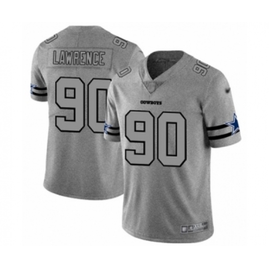 Men's Dallas Cowboys #90 DeMarcus Lawrence Gray Team Logo Gridiron Limited Football Jersey