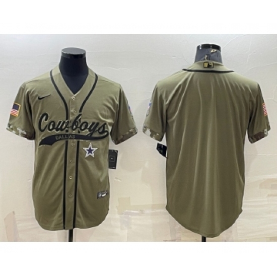 >Men's Dallas Cowboys Blank Olive Salute to Service Cool Base Stitched Baseball Jersey