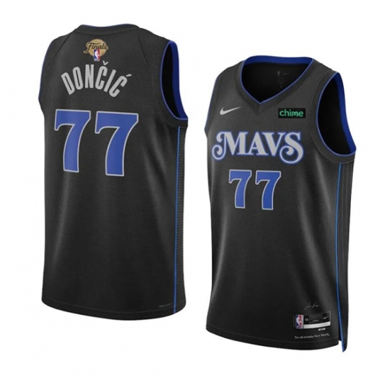 Men's Dallas Mavericks #77 Luka Doncic Black 2024 Finals City Edition Stitched Basketball Jersey