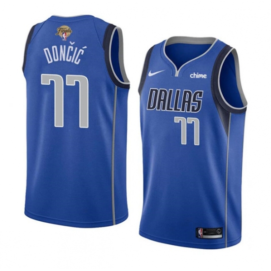 Men's Dallas Mavericks #77 Luka Doncic Blue 2024 Finals Icon Edition Stitched Basketball Jersey