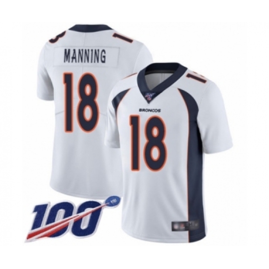 Men's Denver Broncos #18 Peyton Manning White Vapor Untouchable Limited Player 100th Season Football Jersey