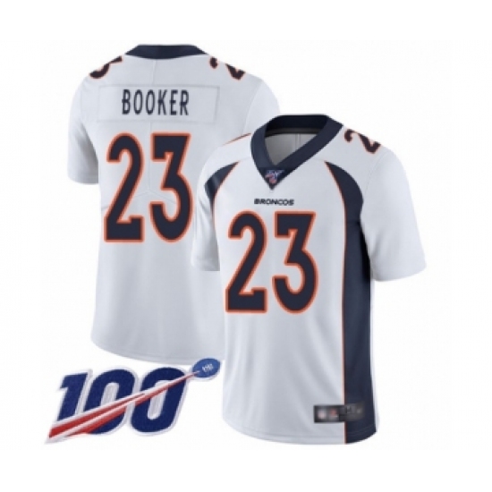 Men's Denver Broncos #23 Devontae Booker White Vapor Untouchable Limited Player 100th Season Football Jersey