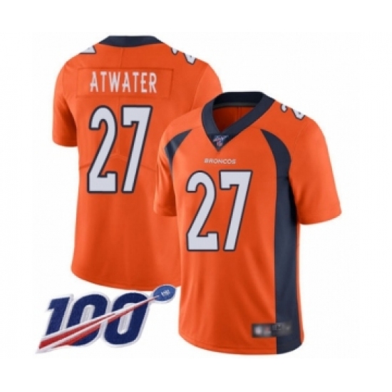 Men's Denver Broncos #27 Steve Atwater Orange Team Color Vapor Untouchable Limited Player 100th Season Football Jersey