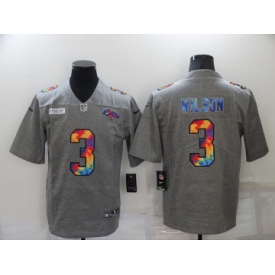 >Men's Denver Broncos #3 Russell Wilson Multi-Color Greyheather 2020 Crucial Catch Football Jersey