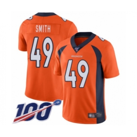 Men's Denver Broncos #49 Dennis Smith Orange Team Color Vapor Untouchable Limited Player 100th Season Football Jersey