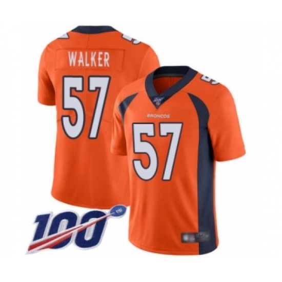 Men's Denver Broncos #57 Demarcus Walker Orange Team Color Vapor Untouchable Limited Player 100th Season Football Jersey