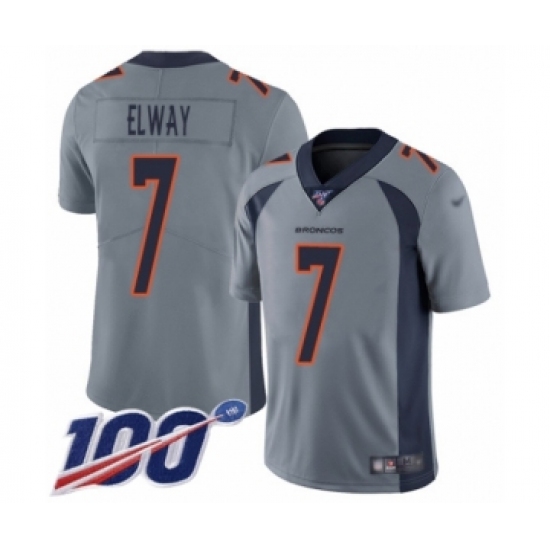 Men's Denver Broncos #7 John Elway Limited Silver Inverted Legend 100th Season Football Jersey