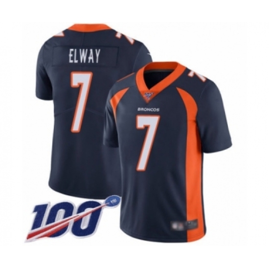 >Men's Denver Broncos #7 John Elway Navy Blue Alternate Vapor Untouchable Limited Player 100th Season Football Jersey