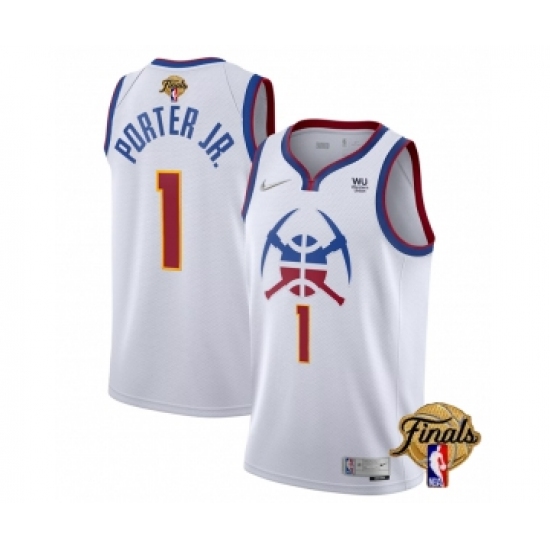 Men's Denver Nuggets #1 Michael Porter Jr. White 2023 Finals Earned Edition Stitched Basketball Jersey