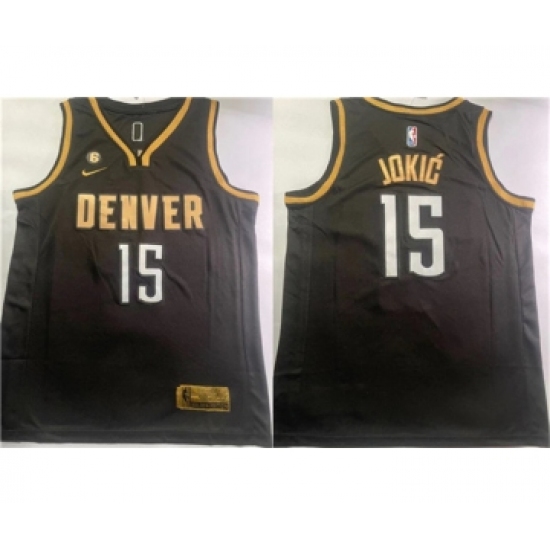 >Men's Denver Nuggets #15 Nikola Jokic Black With NO.6 Stitched Jersey