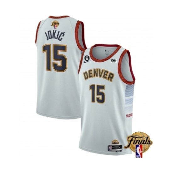 Men's Denver Nuggets #15 Nikola Jokic White 2023 Finals Collection With NO.6 Stitched Basketball Jersey