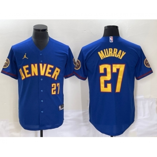 Men's Denver Nuggets #27 Jamal Murray Blue Cool Base Stitched Baseball Jersey