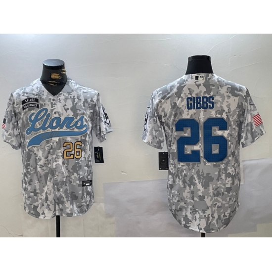 >Men's Detroit Lions #26 Jahmyr Gibbs 2024 Arctic Camo Salute To Service Stitched Baseball Jerseys
