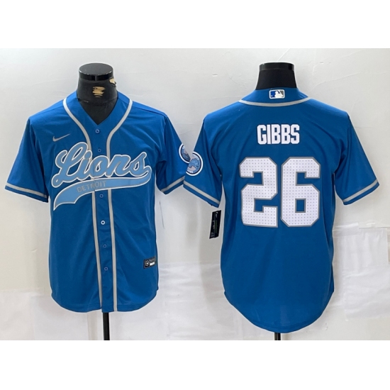 Men's Detroit Lions #26 Jahmyr Gibbs Blue With Cool Base Stitched Baseball Jersey