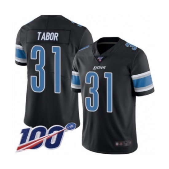 >Men's Detroit Lions #31 Teez Tabor Limited Black Rush Vapor Untouchable 100th Season Football Jersey