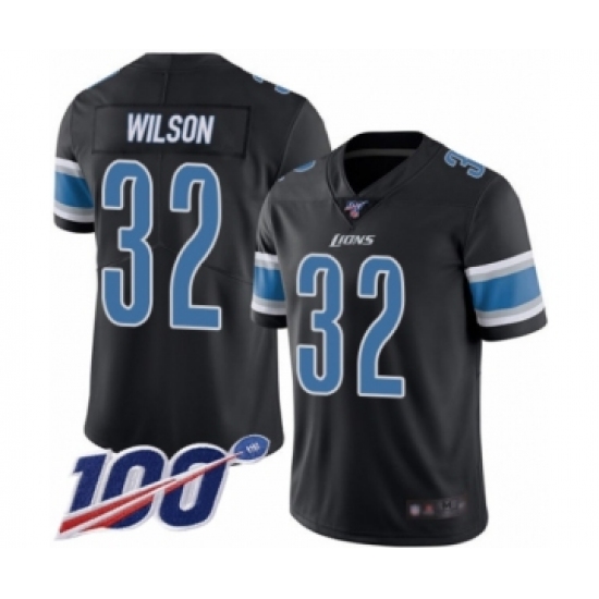 >Men's Detroit Lions #32 Tavon Wilson Limited Black Rush Vapor Untouchable 100th Season Football Jersey