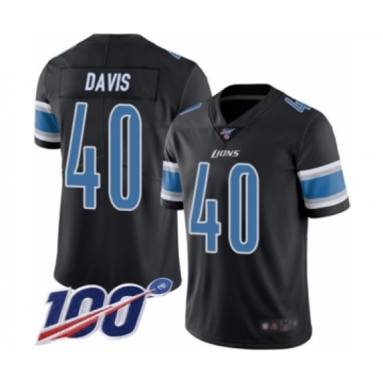 >Men's Detroit Lions #40 Jarrad Davis Limited Black Rush Vapor Untouchable 100th Season Football Jersey