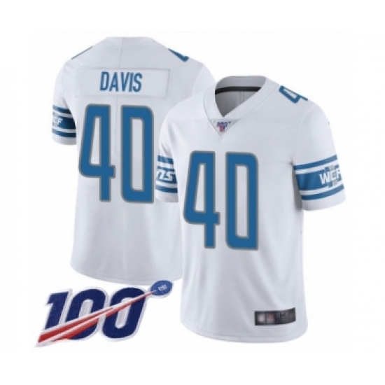 >Men's Detroit Lions #40 Jarrad Davis White Vapor Untouchable Limited Player 100th Season Football Jersey