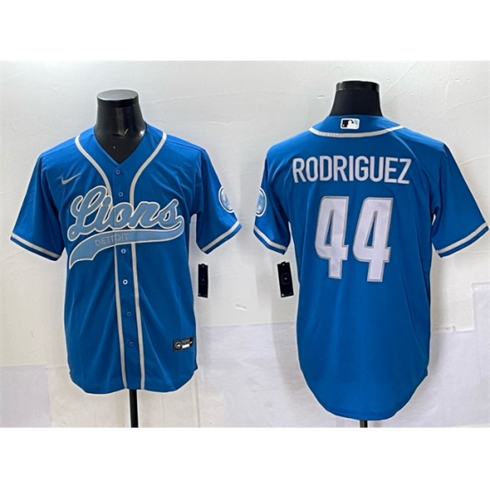 Men's Detroit Lions #44 Malcolm Rodriguez Blue Cool Base Stitched Baseball Jersey