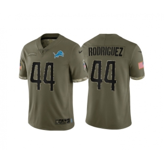 >Men's Detroit Lions #44 Malcolm Rodriguez Olive 2022 Salute To Service Limited Stitched Jersey