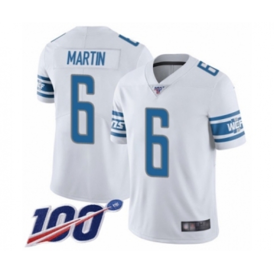 Men's Detroit Lions #6 Sam Martin White Vapor Untouchable Limited Player 100th Season Football Jersey