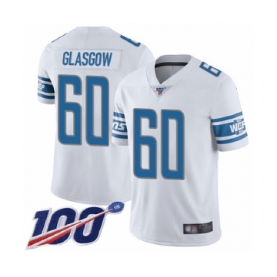 Men's Detroit Lions #60 Graham Glasgow White Vapor Untouchable Limited Player 100th Season Football Jersey
