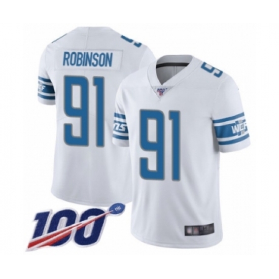 Men's Detroit Lions #91 A'Shawn Robinson White Vapor Untouchable Limited Player 100th Season Football Jersey