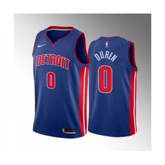 >Men's Detroit Pistons #0 Jalen Duren 2022 Draft Blue Basketball Stitched Jersey