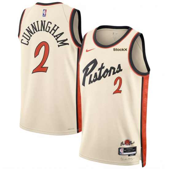 Men's Detroit Pistons #2 Cade Cunningham Cream 2024-25 City Edition Stitched Basketball Jersey