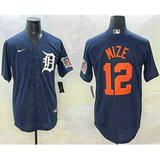 Men's Detroit Tigers #12 Casey Mize Navy Alternate With Cool Base Stitched Jersey