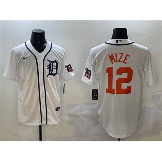 Men's Detroit Tigers #12 Casey Mize White With Cool Base Stitched Baseball Jersey