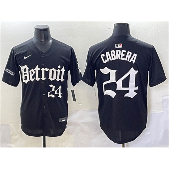 Men's Detroit Tigers #24 Miguel Cabrera Black 'Motor Gothic Edition' Vapor Premier Limited Stitched Baseball Jersey
