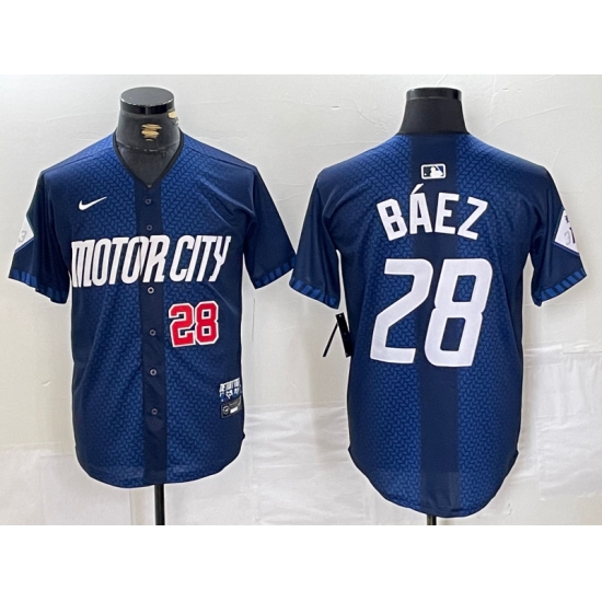 Men's Detroit Tigers #28 Javier Baez Number 2024 Navy City Connect Cool Base Limited Stitched Jerseys