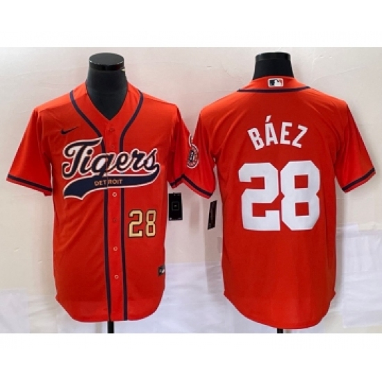 Men's Detroit Tigers #28 Javier Báez Orange Cool Base Stitched Baseball Jersey