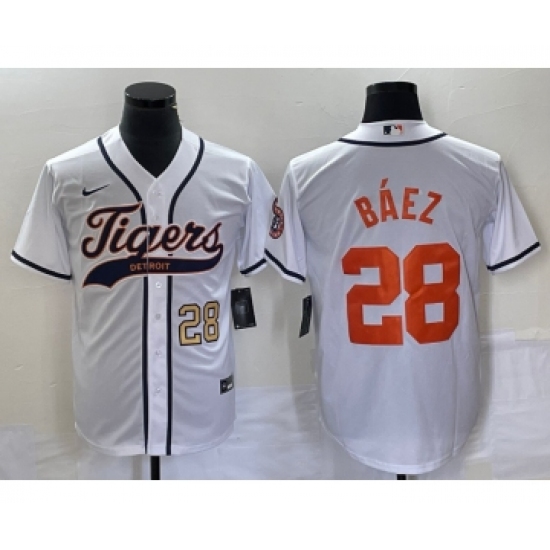 Men's Detroit Tigers #28 Javier Baez Number White Cool Base Stitched Baseball Jersey