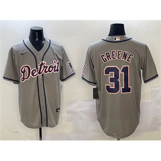 >Men's Detroit Tigers #31 Riley Greene Gray With Cool Base Stitched Baseball Jersey