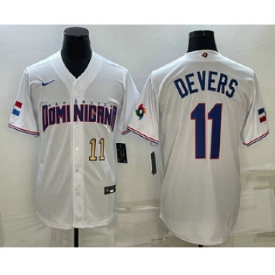 Men's Dominican Republic Baseball #11 Rafael Devers Number 2023 White World Baseball Classic Stitched Jersey