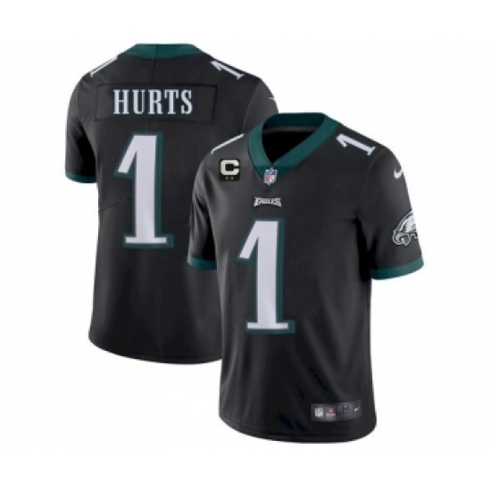 >Men's Eagles 2022 #1 Jalen Hurts Black With 2-star C Patch Vapor Untouchable Limited Stitched NFL Jersey